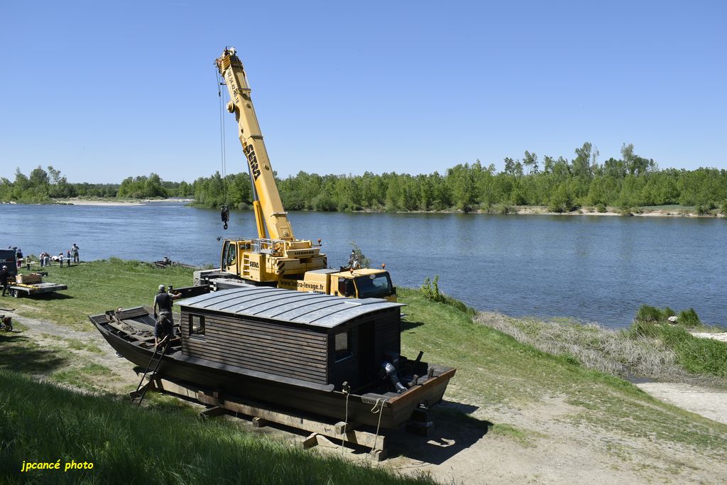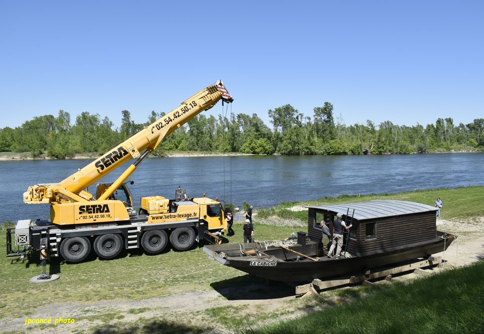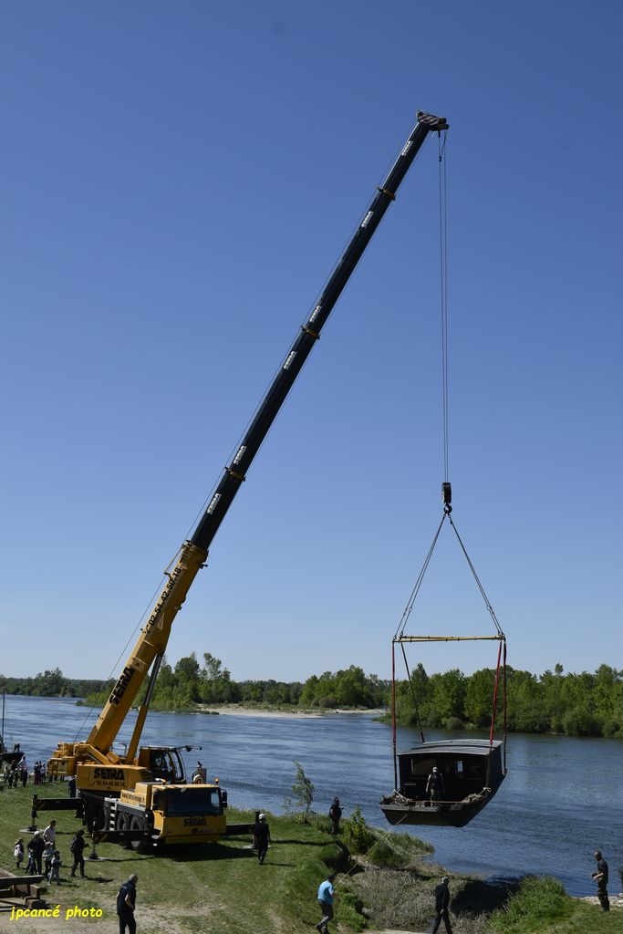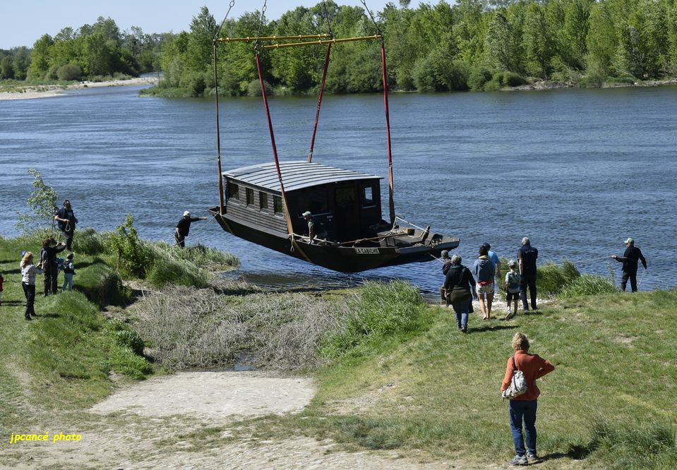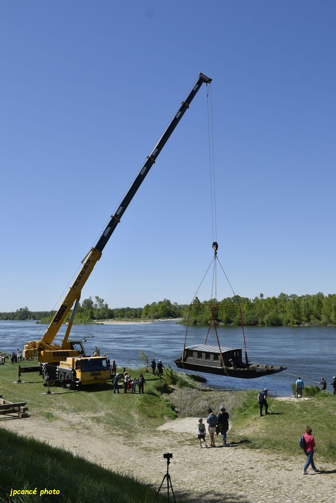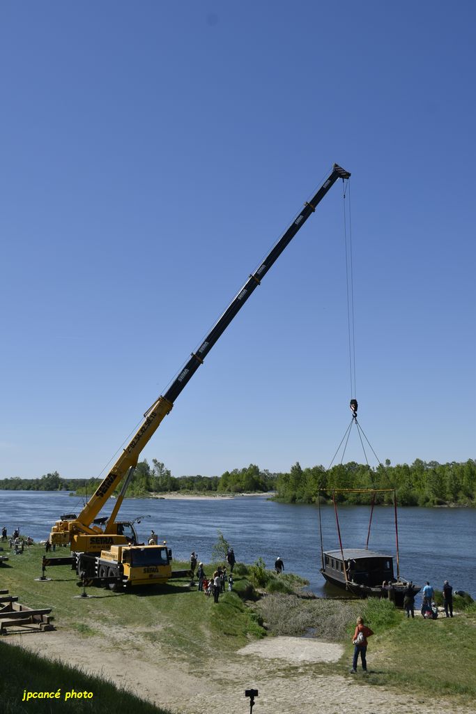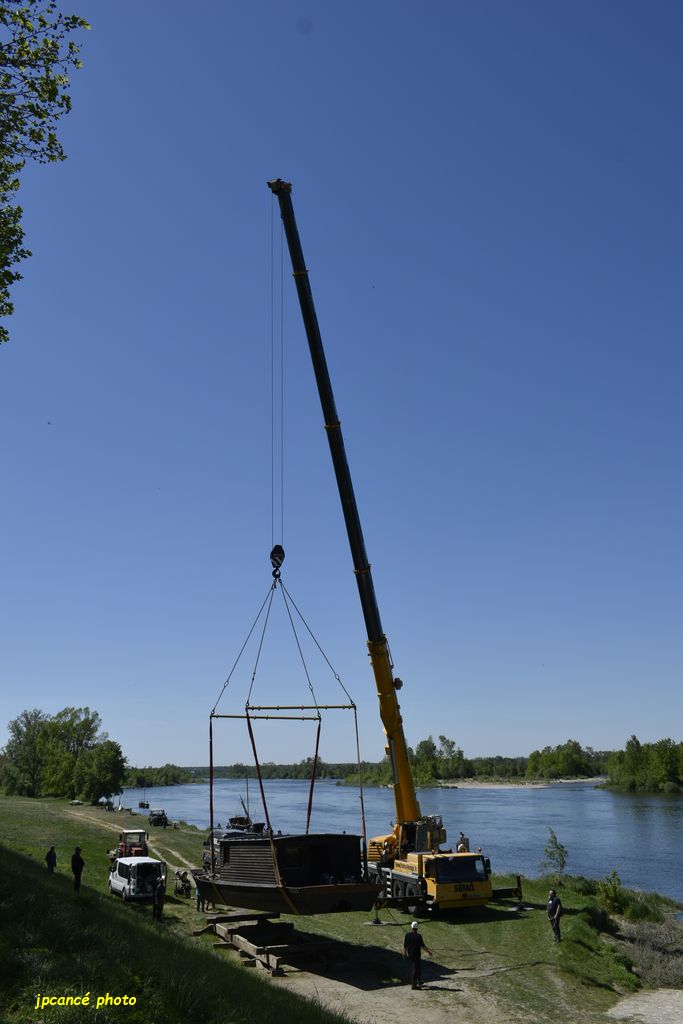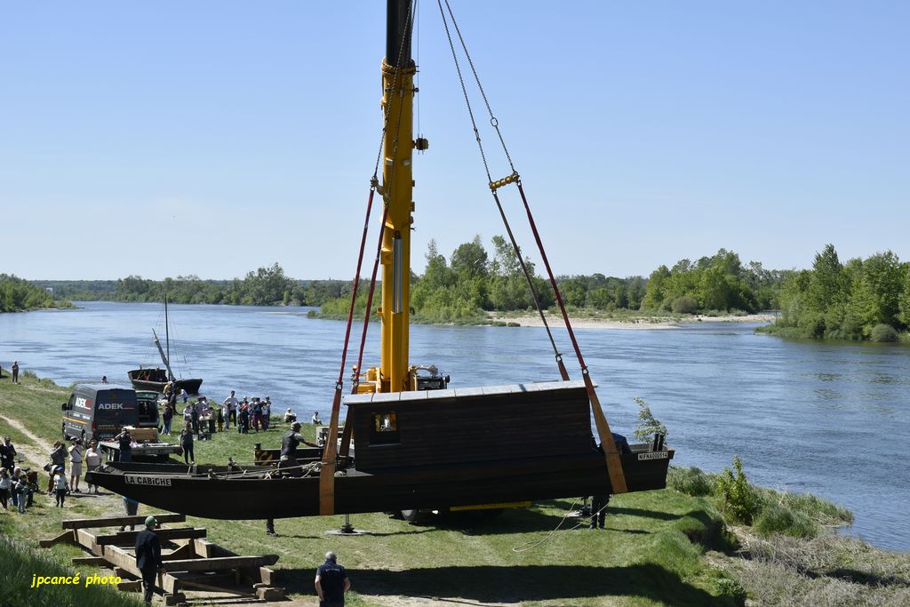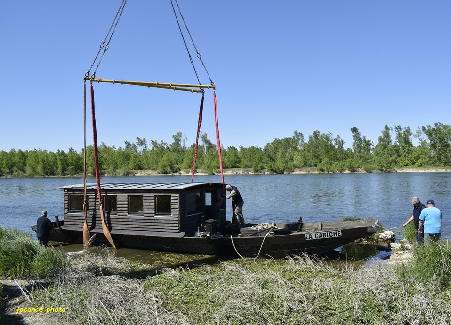 Ce jeudi 23 avril 2026 après-midi, au Port de Chambord à St Dyé-sur-Loire (41) après de longues réparations et entretien, La Cabiche est retournée à la Loire. Une mise en œuvre qui avait attirée nombre de curieux qui ont surveillé les manœuvres de l’énorme grue. Avec précautions, la toue cabanée a été mise à l’eau relativement rapidement bien guidée par l’équipe des Marins du Port de Chambord l’association locale.